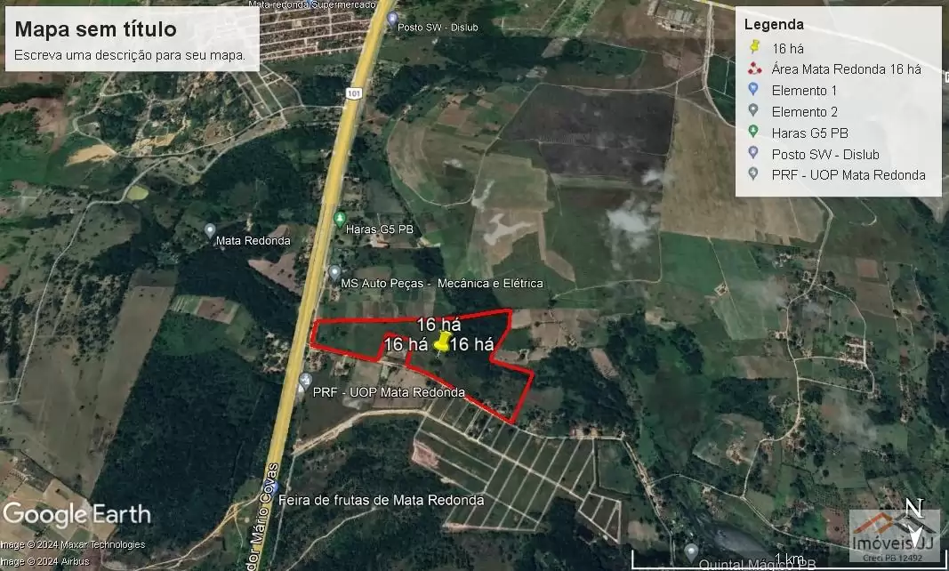 Terreno à Venda ? 16 hectares ? BR-101 ? Mata Redonda/PB