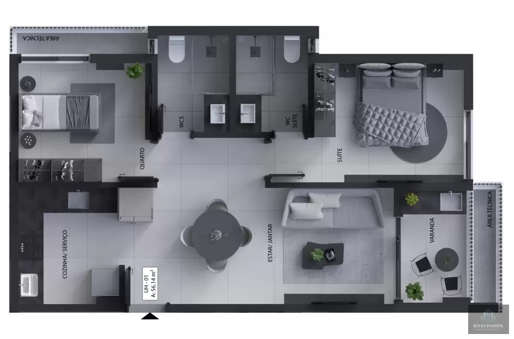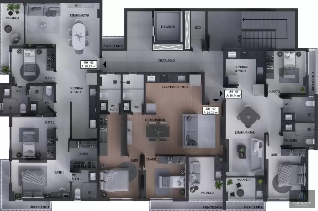 Apartamentos a partir de R$ 356.000,00 com įreas de 56,14 a 81,04 m²